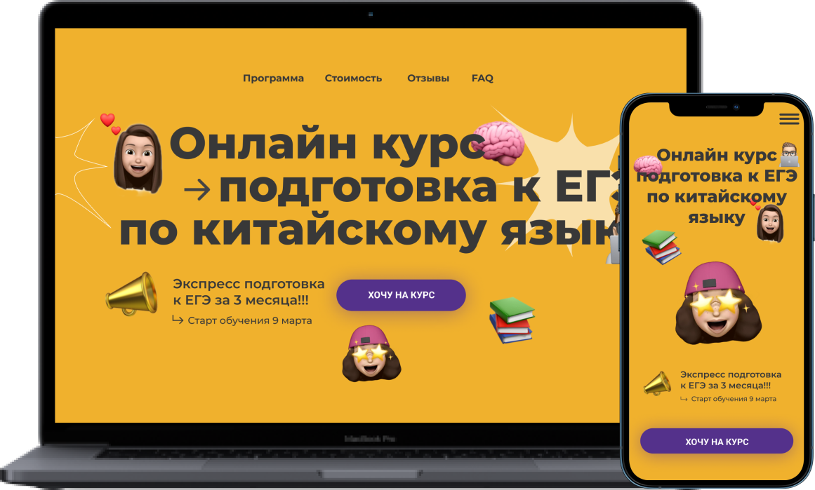 К нам обратился преподаватель Китайского языка с запросом создать яркий и современный лендинг для продажи своего онлайн-курса. Трафик будет с таргетированной рекламы в Instagram.