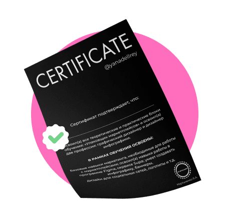 После завершения обучения мы добавим вас в специальный чат, где мы собрали вакансии по дизайну от клиентов